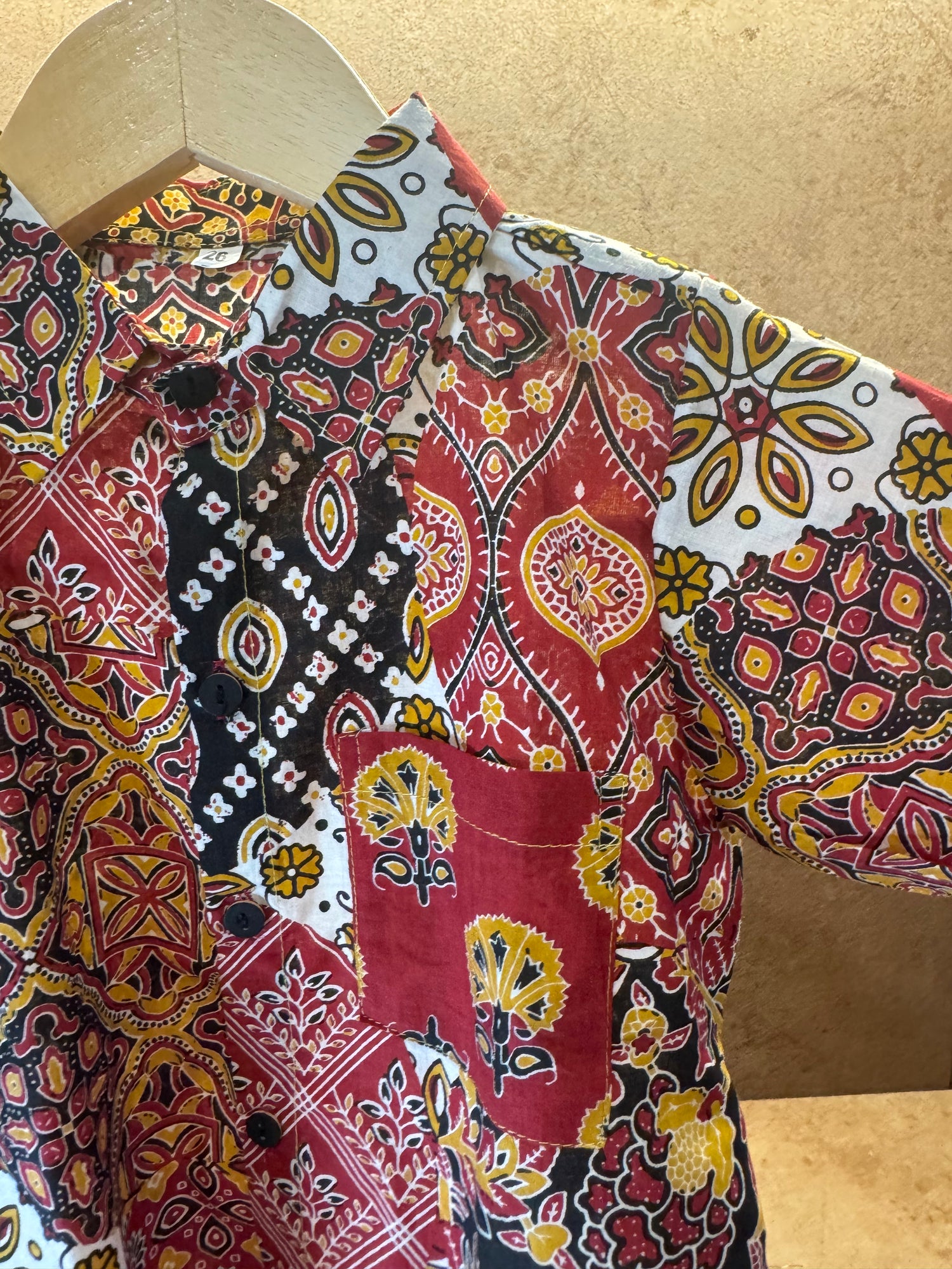 Orange Traditional Block Print Half Sleeve Co-ord Set For Boys