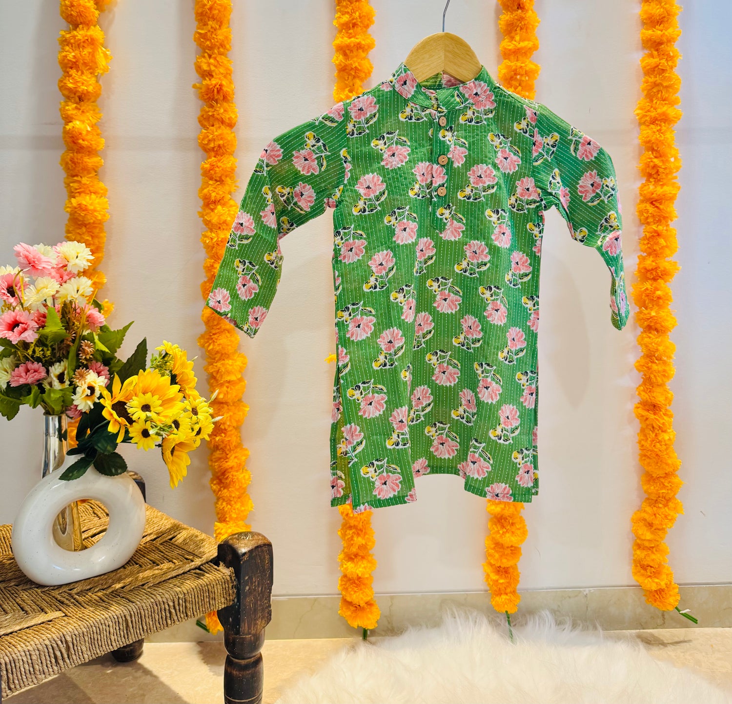 Pink Ajrakh Gotta Patti Print Kurta Set for Boys